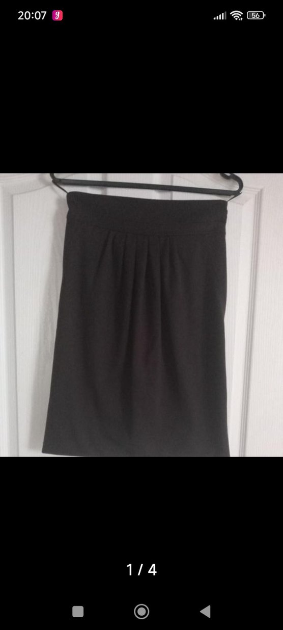 Düz siyah midi boy , pileli detaylı ve vücuda oturan kesime sahip, yumuşak sentetik kumaştan üretilmiştir, ofis kullanımı için uygundur.