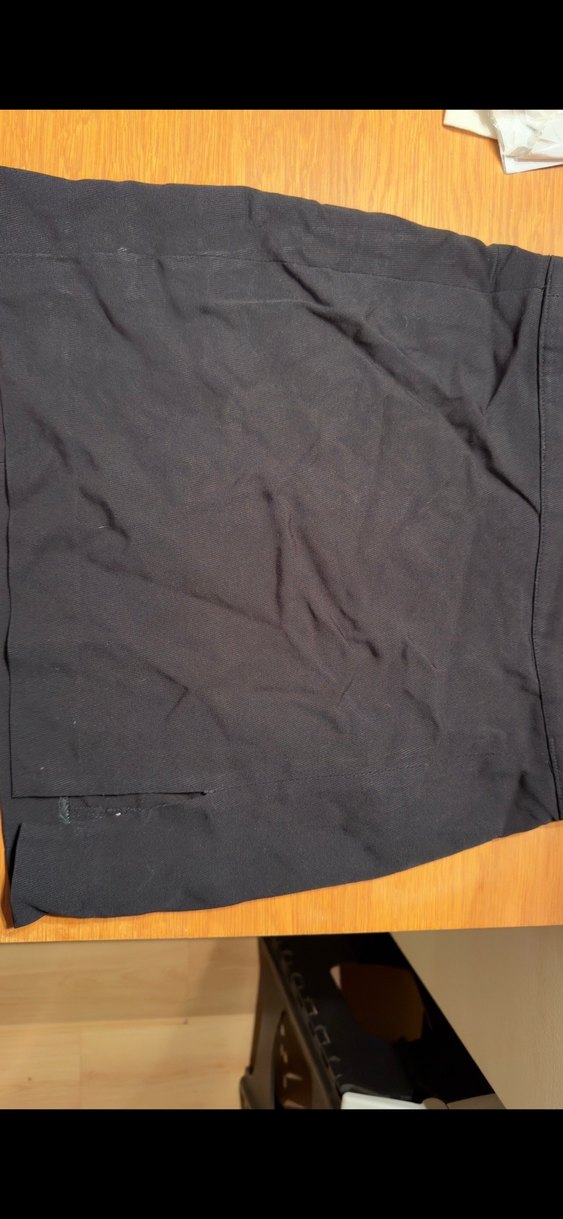 Düz siyah midi uzunlukta, fermuarlı, sentetik kumaştan yapılmış, ofis stiline uygun, minimalist tasarımlı hamile eteği.