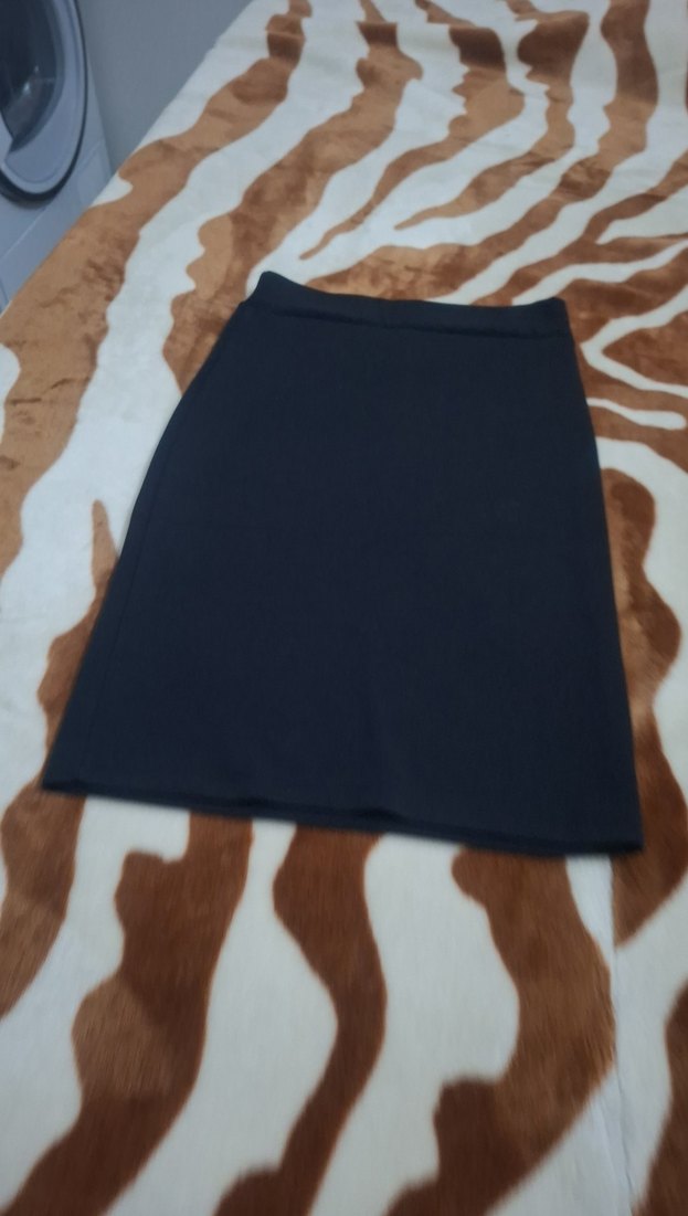 Düz siyah midi kalem etek, rahat kesimi ve yumuşak sentetik kumaşıyla ofis ve günlük kullanıma uygundur. Zahmetsiz şıklık sunar.