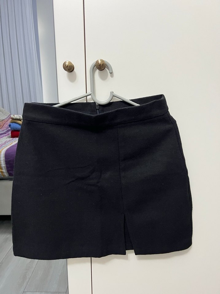 Düz siyah mini etek, pürüzsüz sentetik kumaştan üretilmiş, desensiz ve şık. Ofis ve sokak stiline uygun, rahat bir şıklık sunar.
