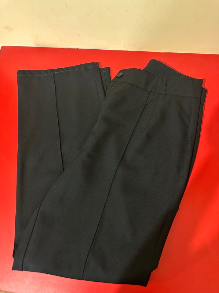 Ofis ve sokak stiline uygun, düz siyah renkte, pilili ve normal kesim midi kumaş pantolon.