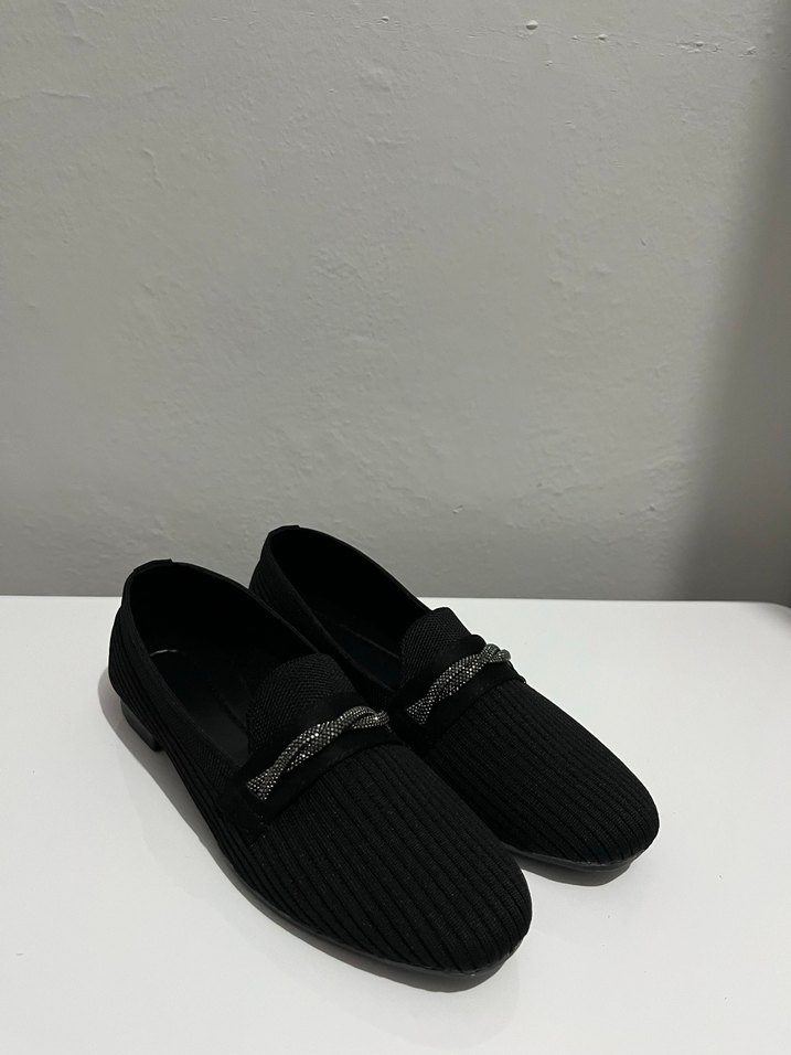 Düz Tabanlı Siyah Triko Kadın Babet