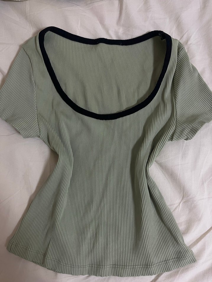 Düz yeşil, kısa kollu ve tekne yakalı pileli kadın crop top. Yumuşak sentetik kumaştan, minimalist sokak stili için uygun.
