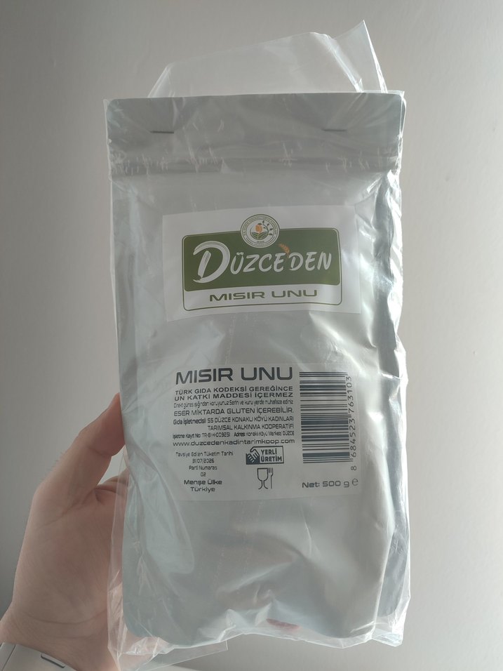 Düzceden markasına ait 500 g x2 mısır unu glutensizdir.
