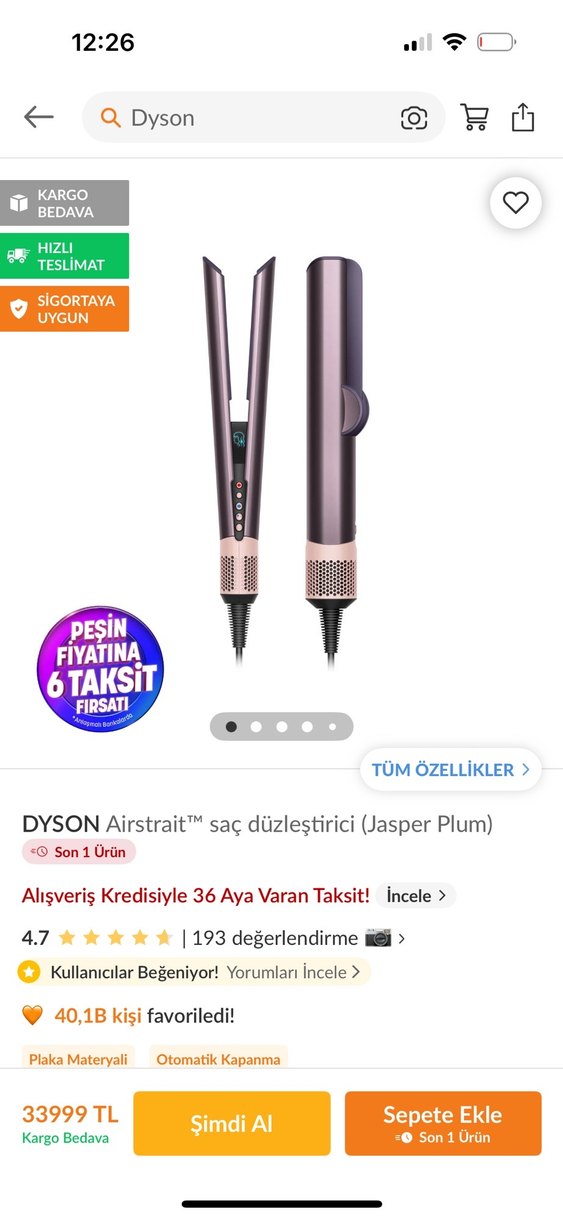 Yeni üründür toplasanız bir kaç defa kullanmışımdır ürün çok ama çok güzel fakat saçımı pek düzleştiren biri değilim o yüzden satıyorum aldığım fiyattan çok uyguna veriyorum isteyen birine gider inşallah