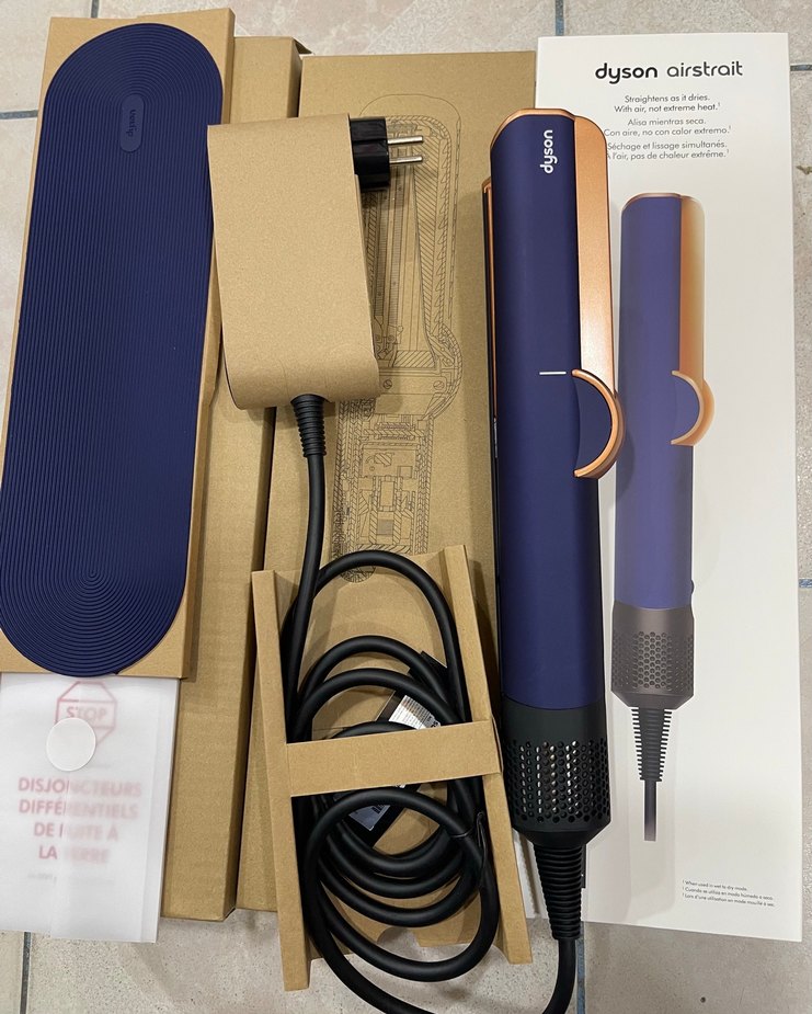 Dyson Airsrait koyu mavi renkli saç düzleştiricidir. Uzun kablosu ve şık tasarımı ile kolay kullanım sunar. Gelişmiş ısı kontrolü sağlar