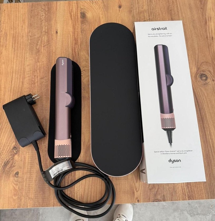 Dyson Airstrait mor saç düzleştirici, yüksek teknoloji hava akımı ile saçları aşırı ısı olmadan düzleştirir. Isıya dayanıklı mat ve orijinal kutu ile birlikte.