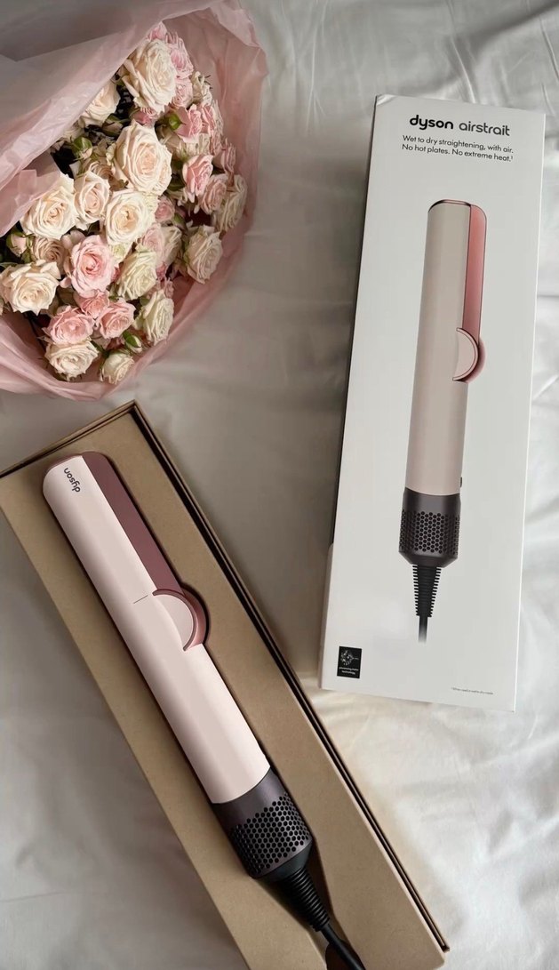 Dyson Airstrait pembe saç düzleştirici, sıcak plaka olmadan hava ile saç düzleştirme sağlar. Saçı kurutup şekillendirir, ısı hasarını azaltır.