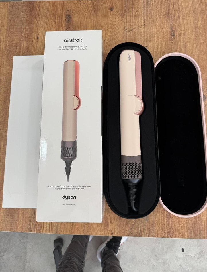 Dyson Airstrait pembe saç düzleştirici, gelişmiş hava akımı teknolojisi ile pürüzsüz ve elektriklenmesiz saçlar sağlar. Koruyucu kutu ile birlikte gelir.