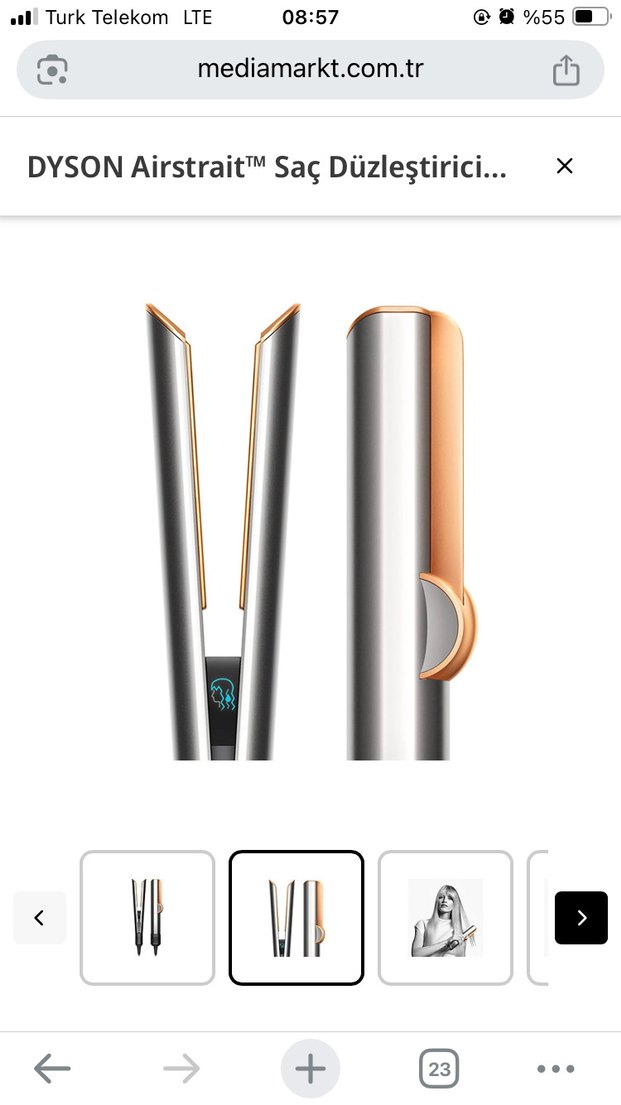 Dyson Airstrait saç düzleştirici, etkili şekillendirme için düzgün plakalar ve rahat tutuş sunan nikel parlak bakır tasarıma sahiptir. ŞUBATTA ALDIM ŞUAN FAZLAYA DÜŞTÜ. UYGUN FİYATA BIRAKIRIM. PİYASA DEĞERİ 23 BİN. SIFIR AYARINDA TOPLAM 5-6 kez kullandım. GARANTİLİ.