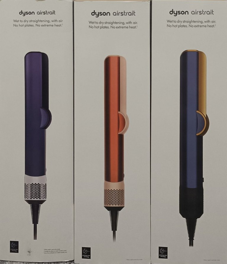 Dyson Airstrait saç düzleştirici, sıcak plakalar olmadan hava ile saçları kurutup düzleştirir, aşırı ısı yok. Çok renkli koyu tonlarda. ♀️