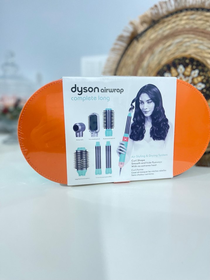 Dyson Airwrap Complete Long turuncu saç şekillendirici, uzun saçlar için çeşitli aparatlarla bukle, kurutma ve düzleştirme imkanı sunar. Gelişmiş hava akımı teknolojisi ile nazik şekillendirme sağlar. ♀️