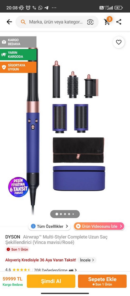 Dyson Airwrap Multi-Styler uzun saçlar için mavi renkte, çeşitli saç şekillendirme başlıklarıyla birlikte gelir. Şık tasarım ve taşıma çantası dahildir. ürün sıfırdır sadece kutu açılıp kontrol sağlanmıştır yurt dışı ürünüdür tekliflere açığım
