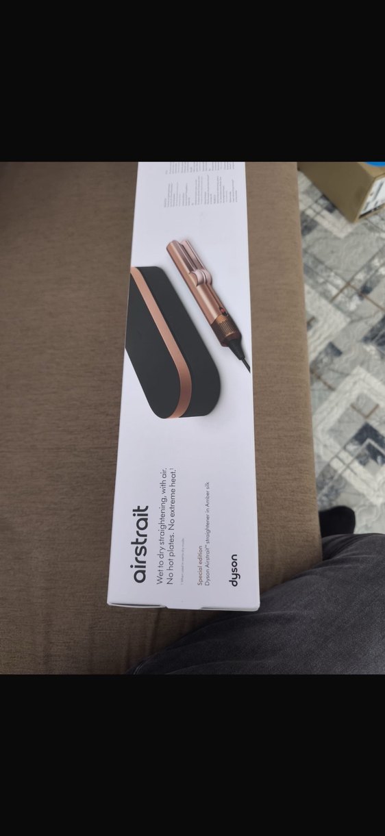 Dyson Airwrap saç düzleştirici, bej renginde olup gelişmiş teknoloji ile saçları zarar vermeden düzleştirir. Koyu renkli ısıya dayanıklı kutu dahildir.