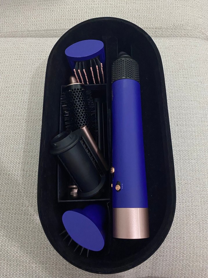 Dyson saç şekillendirici set, yeni rengini sevgilim hediye ettiği için satıyorum ilgilenenler için indirim de yaparım seyahat çantası tüm başlıkları belgeleri ektedir kendi kutusu ile gönderilecektiiir Çoklu başlıklarla saç şekillendirme seti, koyu mavi ve rose gold detaylı, kompakt siyah tepside sunuluyor