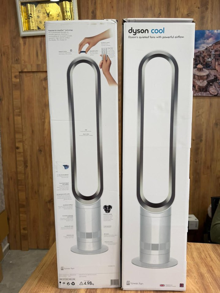 Dyson Cool beyaz ve gri renklerde, güçlü hava akışı sağlayan yapraksız tasarımlı hava temizleyicidir. Sessiz çalışır ve kolay kontrol sunar. ️