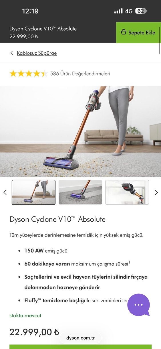 Dyson Cyclone V10 Absolute Kablosuz Elektrikli Süpürge