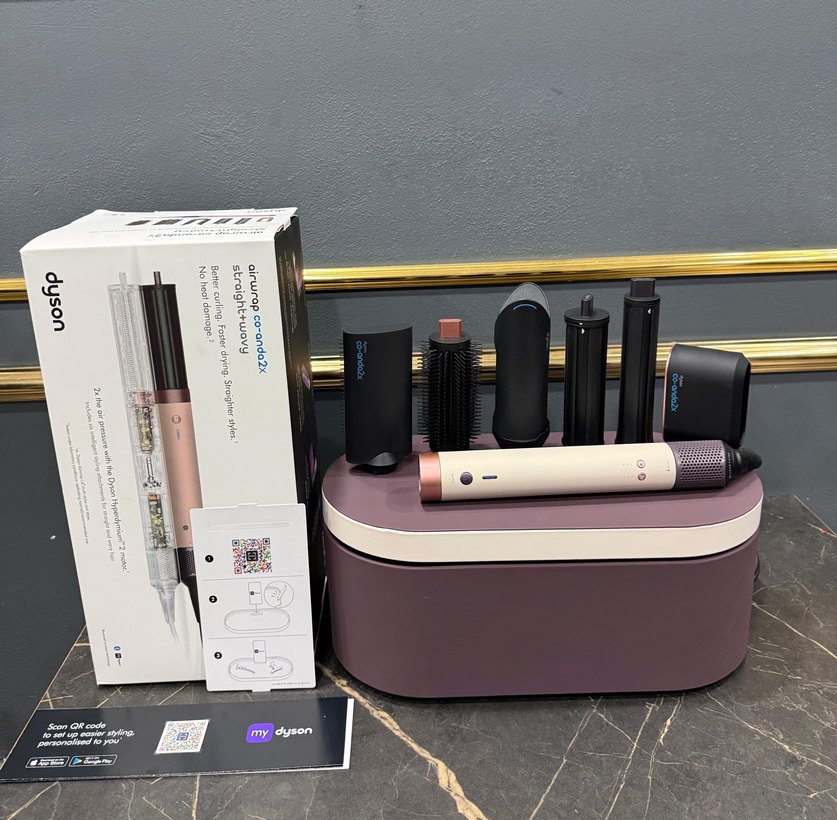 Dyson mor saç şekillendirici seti, çeşitli şekillendirme başlıklarıyla birlikte gelir. Şık saklama kutusu ve orijinal kutusuyla birlikte. Farklı saç stilleri için uygundur. ♀️