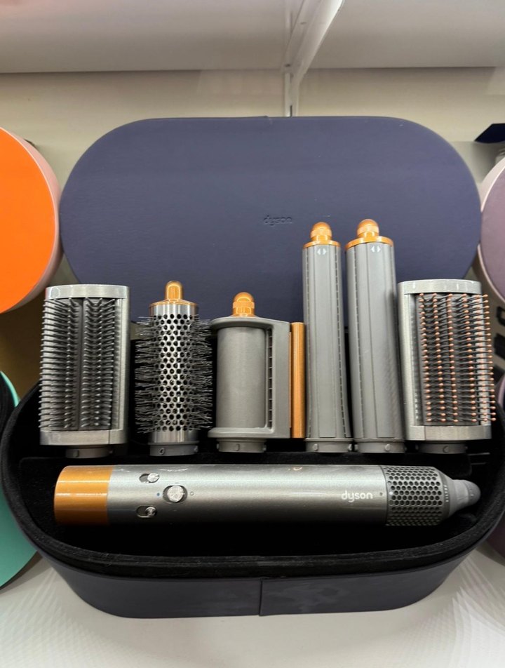 Dyson saç şekillendirici seti, gri renkte çeşitli fırça başlıkları ve ana şekillendirici aleti içerir. ♀️