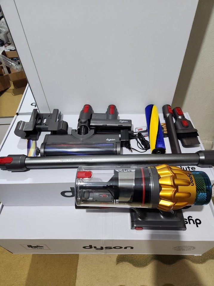Sarı ve koyu renk detaylara sahip Dyson kablosuz elektrikli süpürge, çeşitli temizlik ihtiyaçları için çoklu aparatlarla birlikte gelir. Ev kullanımı için pratik ve fonksiyonel. Çoklu alımlarda indirim yapılır kapalı kutu sıfır şekilde gelir