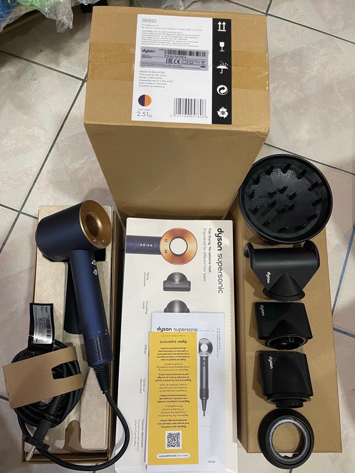 Dyson Supersonic saç kurutma makinesi, kamel rengiyle güçlü kurutma ve şekillendirme için çoklu aparatlarla birlikte gelir. ️