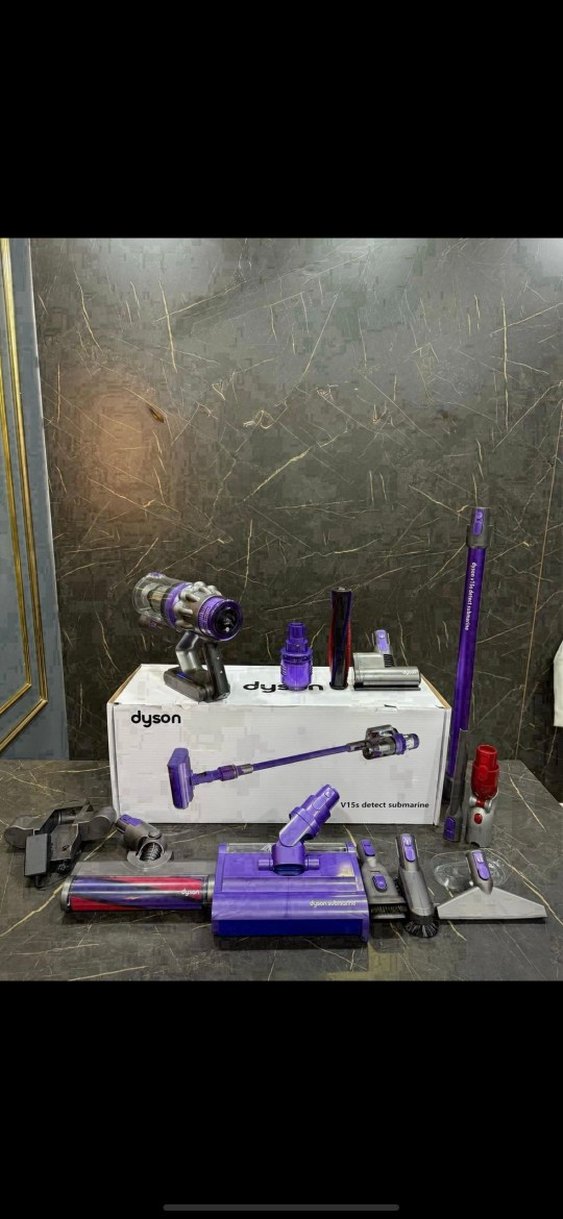 Dyson V15 kablosuz süpürge, çeşitli yüzeyler için çoklu başlıklarla birlikte gelir. Güçlü emiş ve kolay kullanım sağlar.