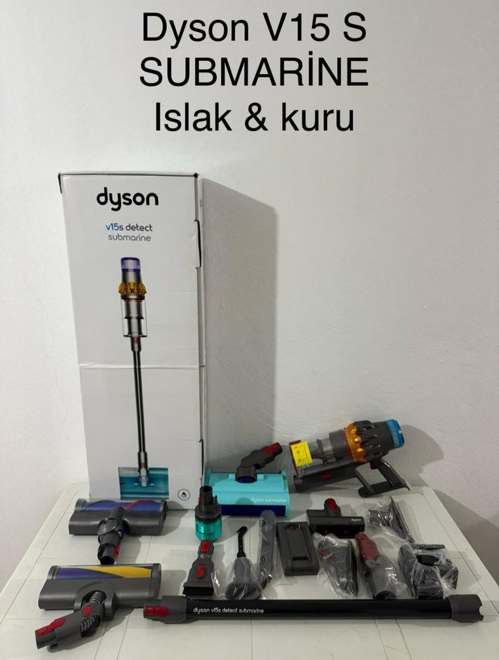 Dyson V15 S Submarine ıslak ve kuru temizleme özellikli, çeşitli aparatlarla çok yönlü kullanıma uygun elektrikli süpürgedir. Koyu ve çok renkli tasarıma sahiptir.
