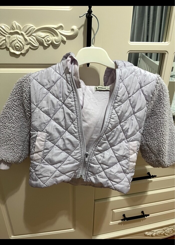 E-bebek Lila renk 3 Yaş, Severek kullandık fermuarının üzerinde yıkanmadan kaynaklı soyulma var onun haricinde iyi durumdadır