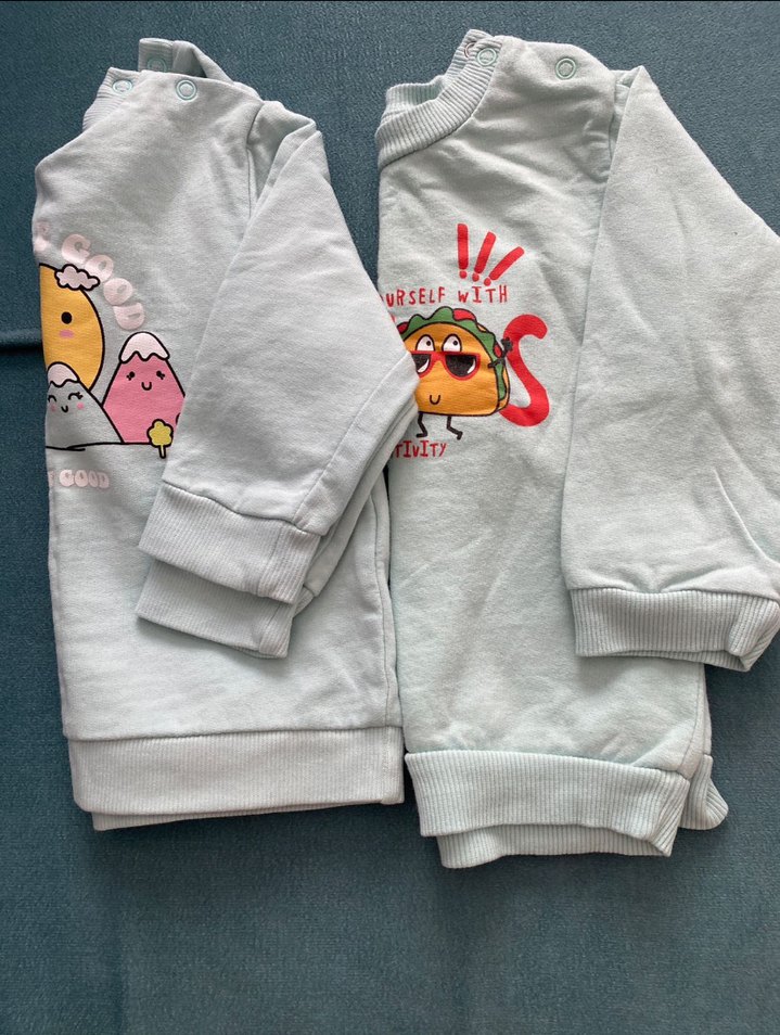 Pamuklu, uzun kollu, fitted kesim kız çocuk sweatshirt pastel renk ve baskılı desenlerle, 'TACS' yazısı bulunur. En fazla 3 kere giyildi hiçbir sorunu yoktur yeni