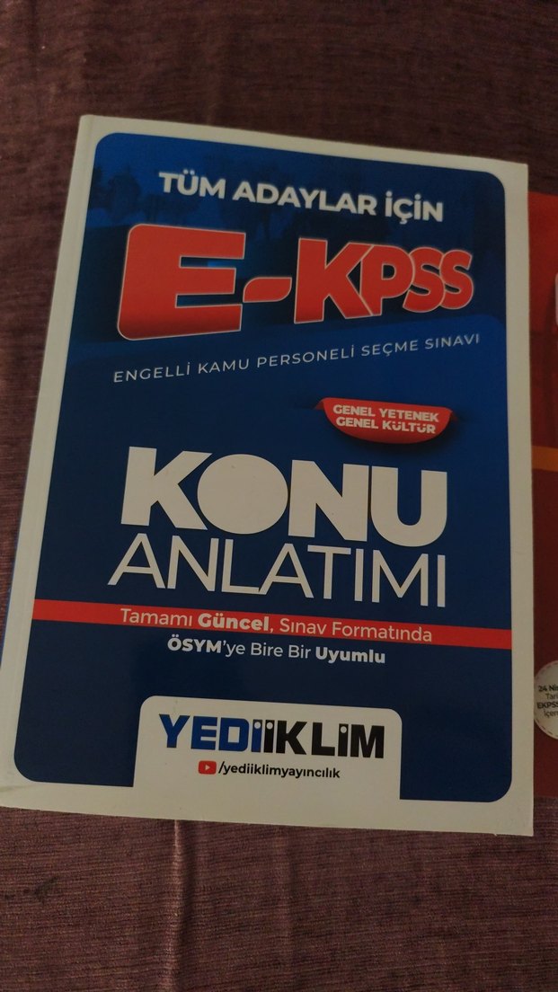 E-KPSS engelli kamu personeli seçme sınavı için güncel konu anlatımı içeren, ÖSYM'ye tam uyumlu kitap. Genel yetenek ve genel kültür konularını kapsar. ürün sıfır ayarındadır sadece ikinci resimde görüldüğü yerde kapağında yırtık vardır