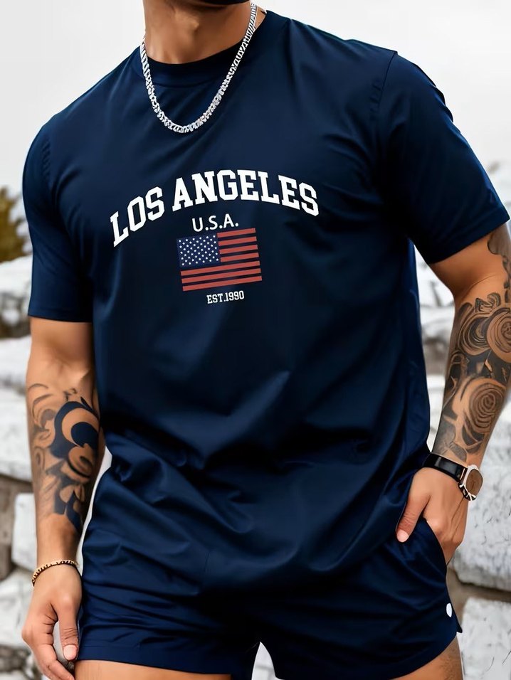 E107 Erkek Los Angeles Baskılı Kısa Kollu Tişört Laci