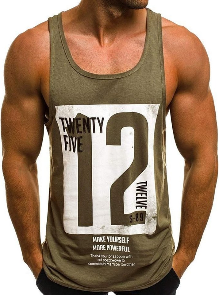 E108 Erkek Twenty Five Baskılı Kolsuz Tişört Haki YURTDIŞI ÜRÜN...