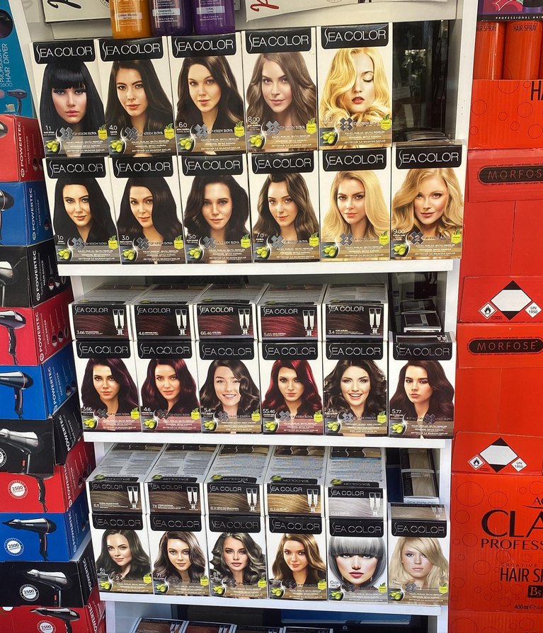 EA Color saç boyaları, koyudan sarıya çeşitli tonlarda zengin ve canlı renk seçenekleri sunar.