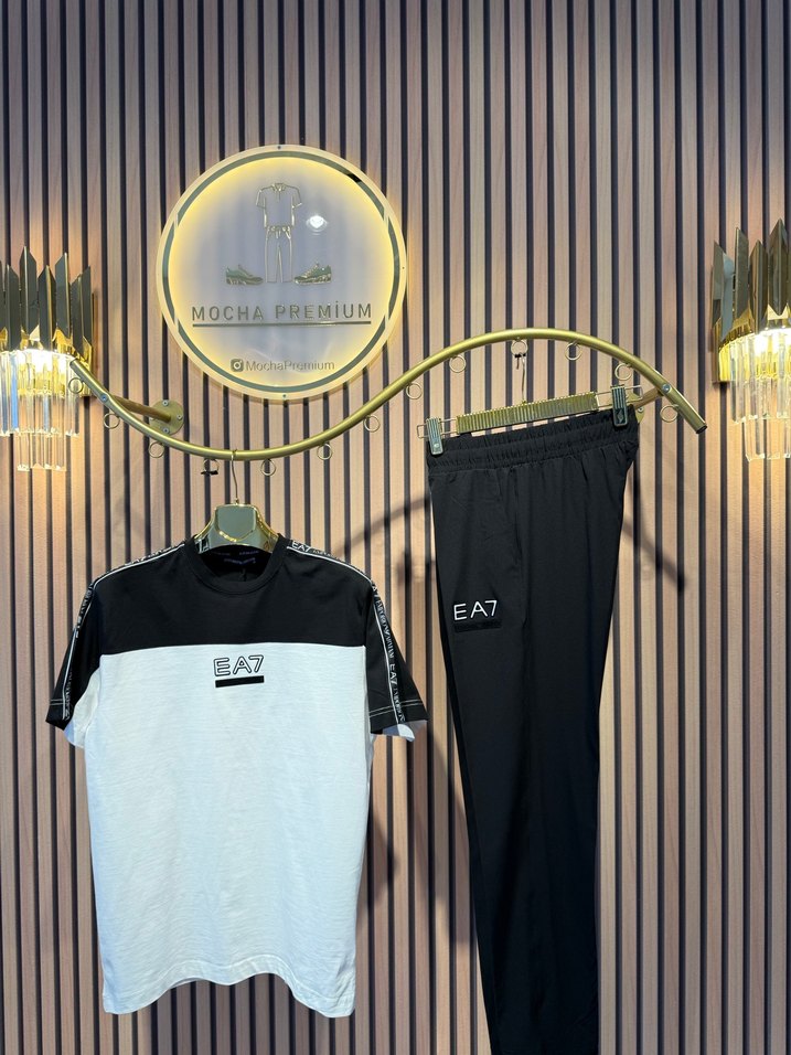 EA7 Baskılı Siyah Beyaz eşofman takım