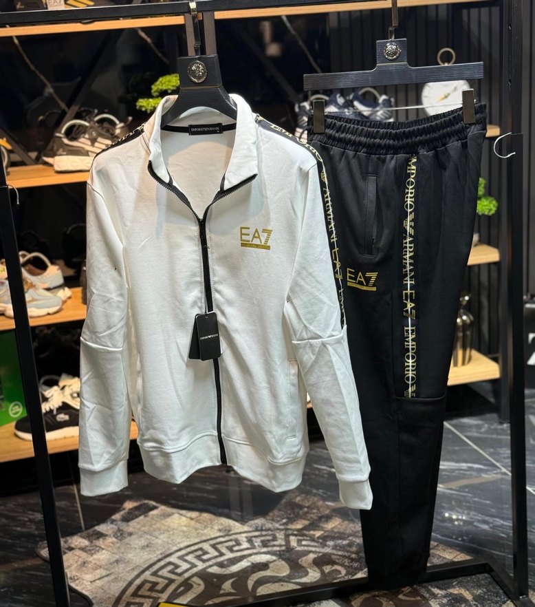 EA7 erkek Beyaz Siyah Fermuarlı Eşofman Takımı