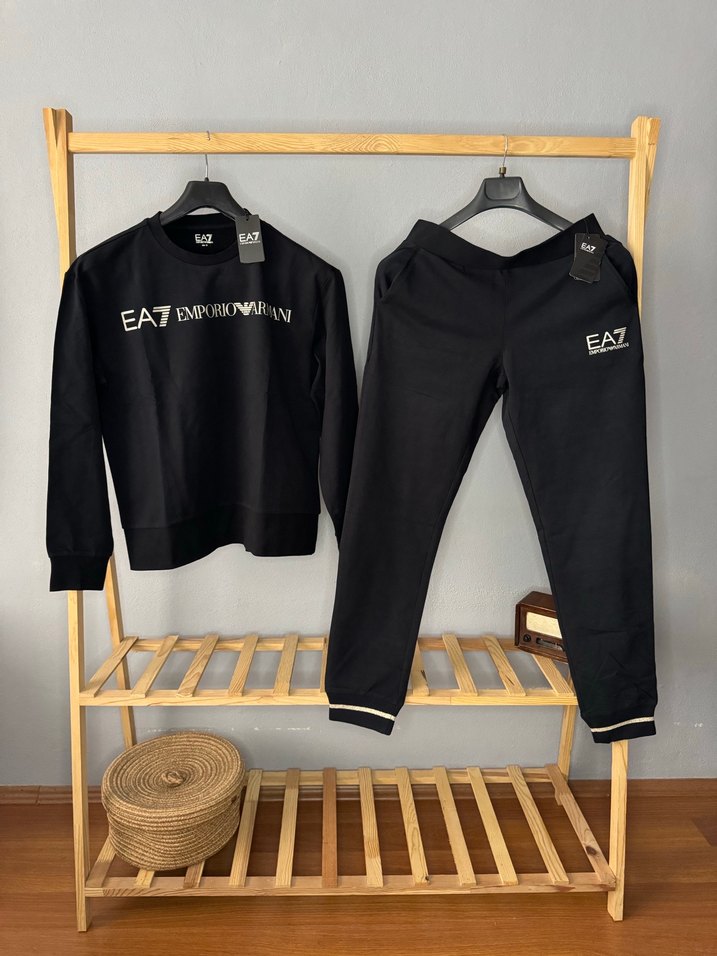 Uzun kollu, bisiklet yaka EA7 siyah sweatshirt ve eşofman altı takımı, yumuşak ahşap bazlı kumaştan üretilmiştir. Rahat kesimi ve baskılı logo detayı ile gündelik sportif şıklık sunar.