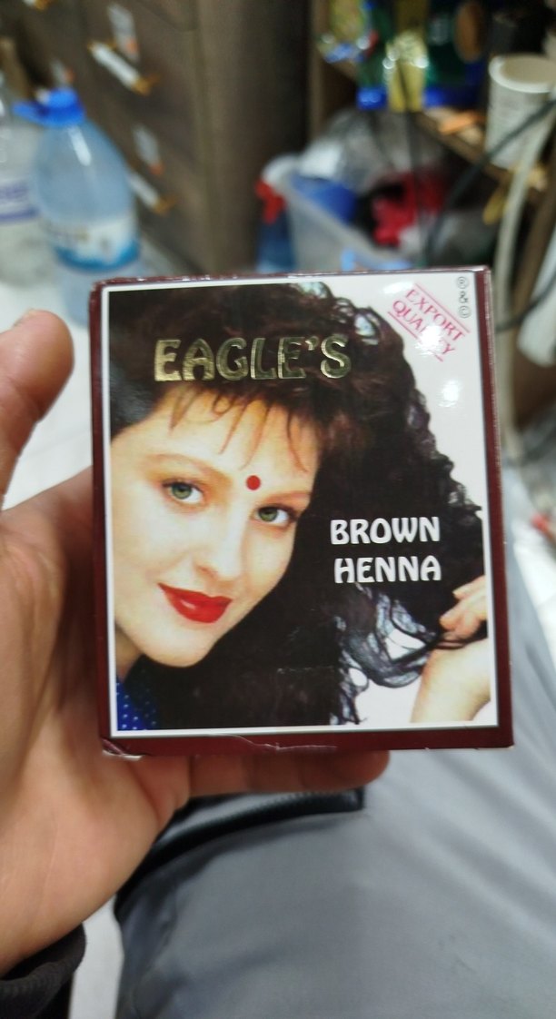 Eagle's Kahverengi Kına saç boyası, doğal kına özleriyle zengin kahverengi ton sağlar ve saçları besler.