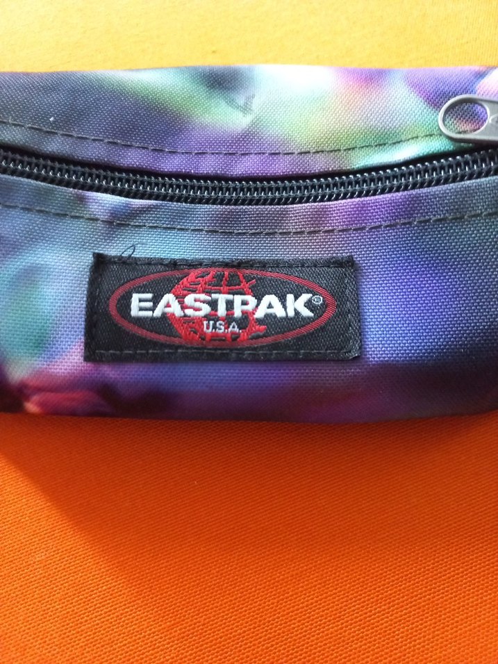 Renkli tie-dye desenli, fermuarlı U.S.A. menşeli EASTPAK markalı, kalemlik