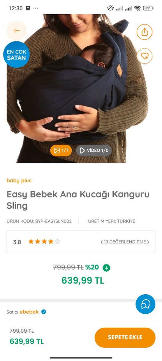 Easy bebek sling, konforlu ve güvenli taşıma sağlar. Türkiye üretimi, yumuşak kumaş ve ergonomik tasarıma sahiptir. Temiz durumda