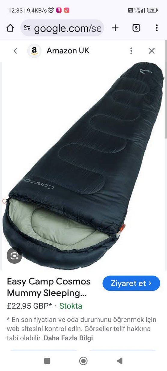 Easy Camp Cosmos siyah mumya uyku tulumu, rahat ve kompakt tasarımıyla dış mekan kullanımı için uygundur. Düz ve koyu renklidir.urün kullanılmış, sağlam ve yıkanmıştır