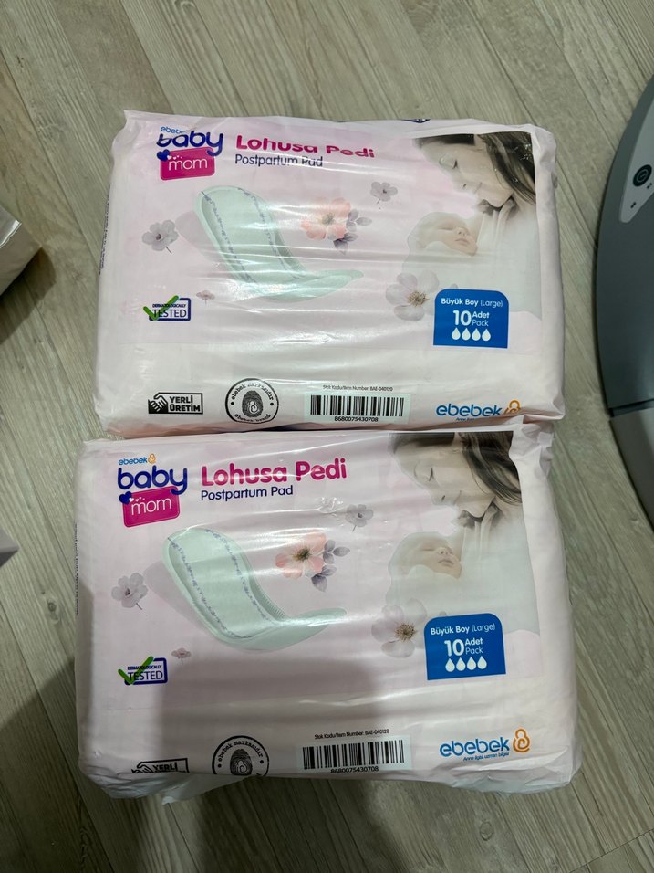Ebebek lohusa pedleri büyük boy, 10'lu paket halinde sunulur. Doğum sonrası konfor ve koruma sağlar.