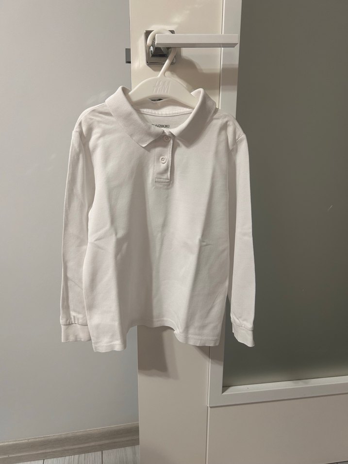 çocuklar için beyaz uzun kollu polo tişört, yakalı ve bol kesimdir. Yumuşak pamuk kumaştan üretilmiştir, sade ve basic tarzda sokak modasına uygundur. Tertemizdir
