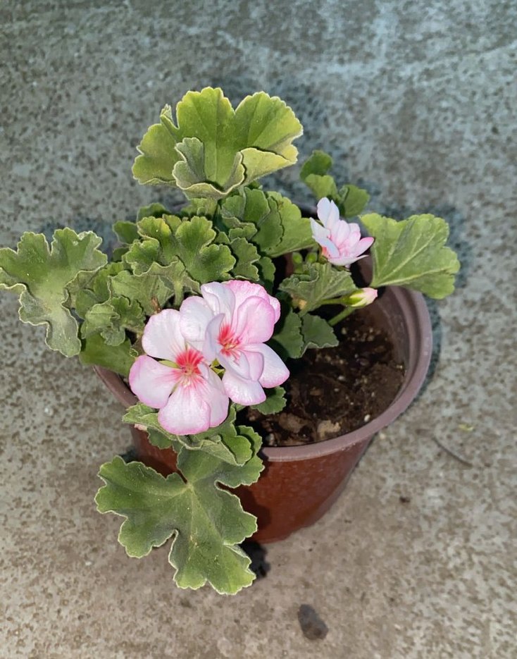 Yeşil kıvrımlı yapraklara ve narin pembe çiçeklere sahip sardunya