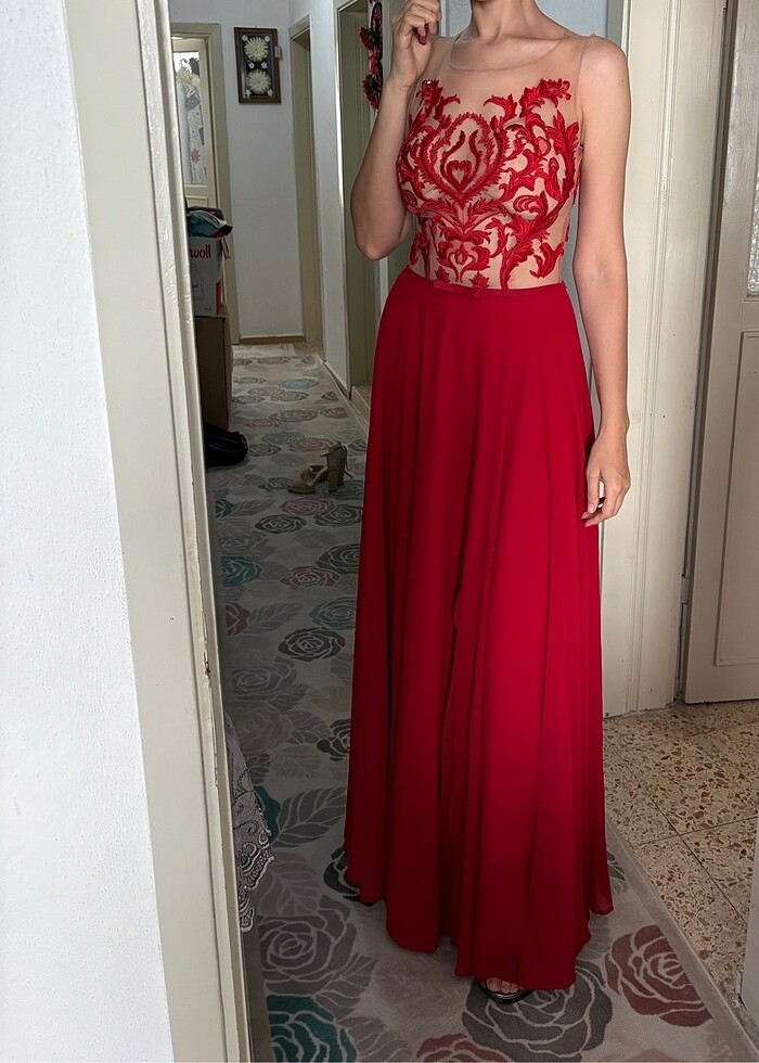 40 beden m l uyumlu kumaşı şahane üstü transparan göğüs pedli pul payet işlemeli içerden askıları var rahat önden yırtmaçlı 1 kez giyildi sorunsuz muhteşem bir elbise