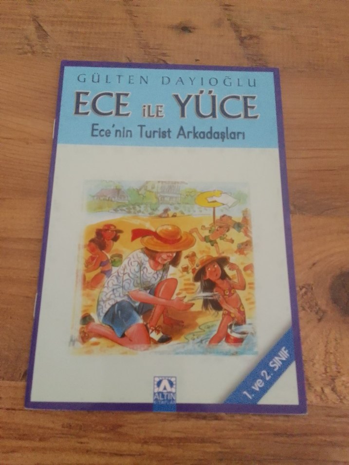 Gülten Dayıoğlu'nun 'Ece ile Yüce: Ece'nin Turist Arkadaşları' adlı, 1. ve 2. sınıflar için renkli resimli çocuk kitabı.