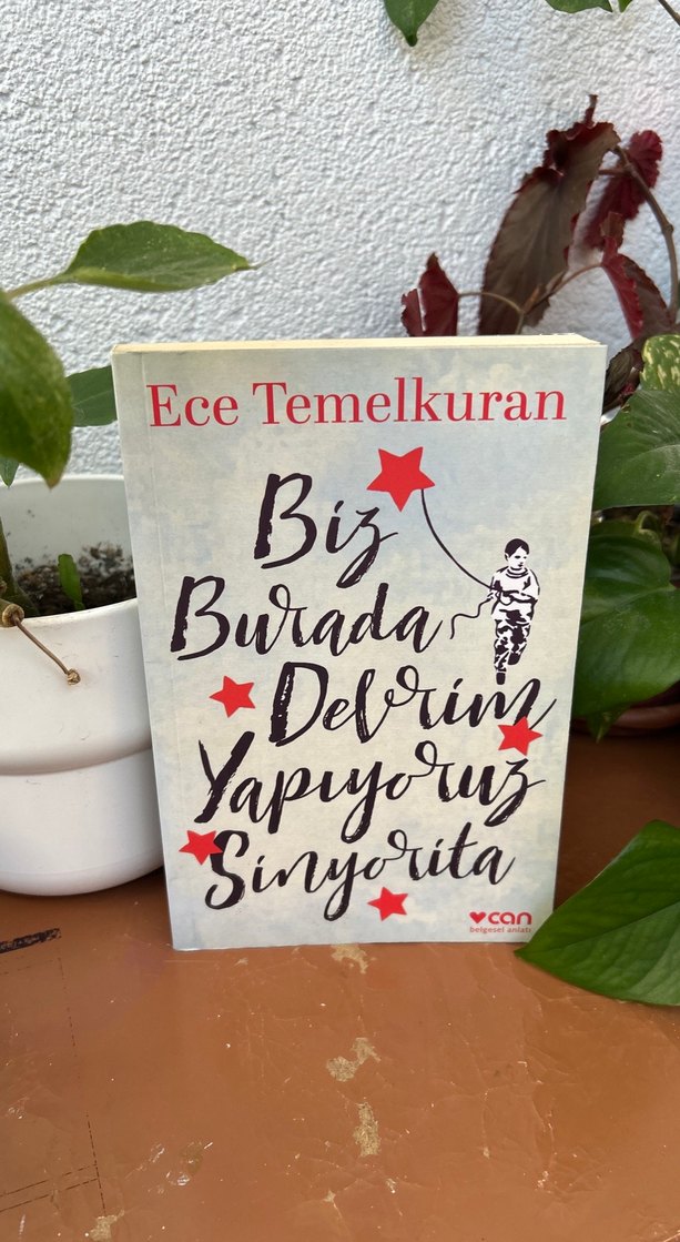Ece Temelkuran'ın 'Biz Burada Devrim Yapıyoruz' adlı şiir kitabı, kapağında kırmızı yıldızlarla devrim temalarını işler.