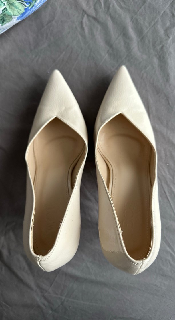 Ece’nin butiği ayakkabı. Bir kez nişanımda giydim. Yepyenidir.Beyaz stiletto topuklu ayakkabılar, sivri burun ve minimalist modern tasarıma sahiptir. Kauçuk malzemeden yapılmış olup, ofis için zahmetsiz şıklık sunar. Düz, desensiz yüzeye ve zarif bir görünüme sahiptir.