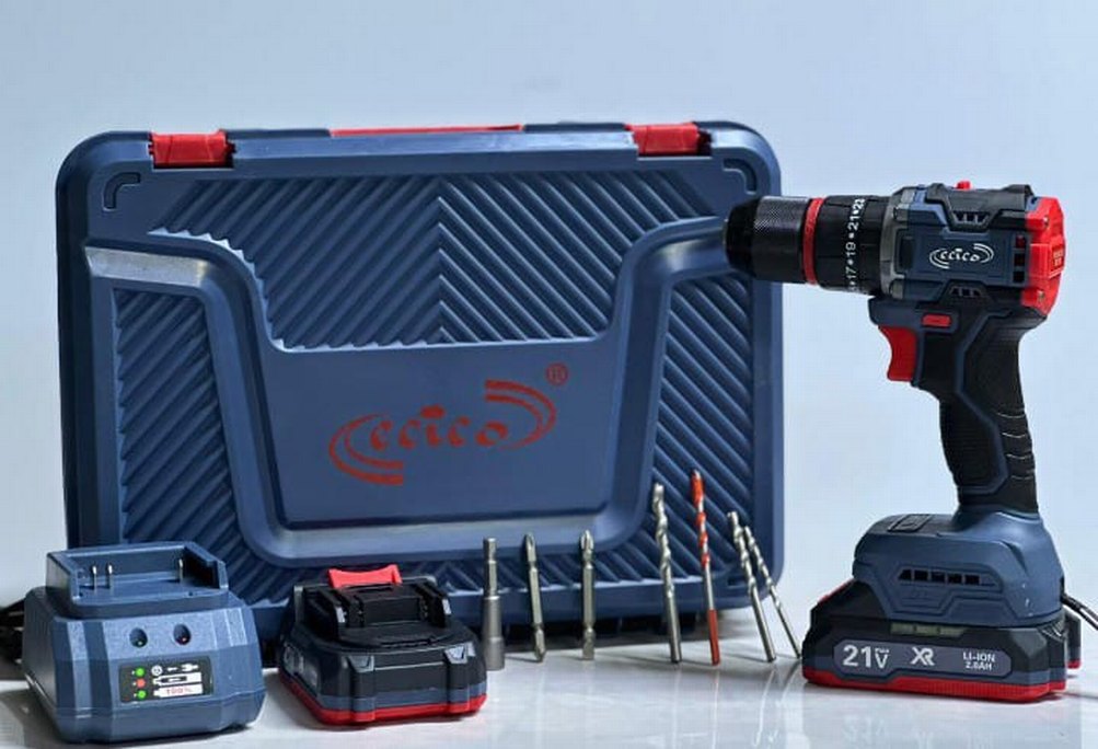 Çeşitli matkap uçları ve pil paketi içeren renkli mavi matkap seti, ev işleri için uygundur.