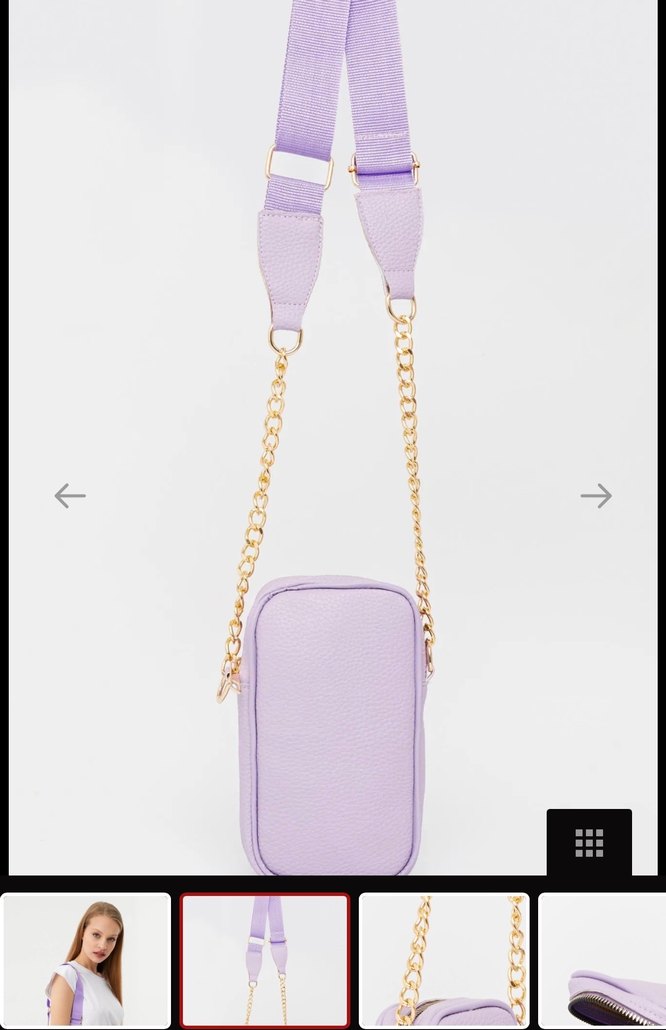 Pastel lila renkte, zincir detaylı ve çıkarılabilir askılı deri çanta. Minimalist sokak stili için uygun. Telefon çantası✨ ECROU markası