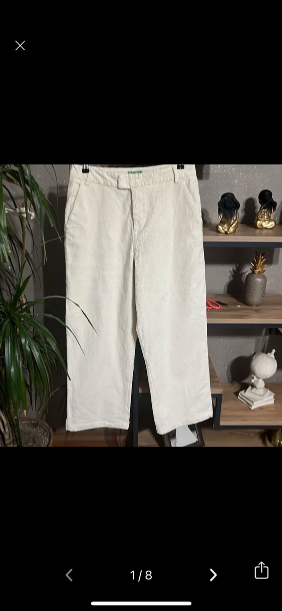 Ecru kadife pantolon, rahat kesimiyle günlük kullanıma ve sokak stiline uygun şık bir seçim. Hafif ve desensiz yapıda.Geçen kış bir kaç kez kullandım. Çok yeni temiz bir ürün.